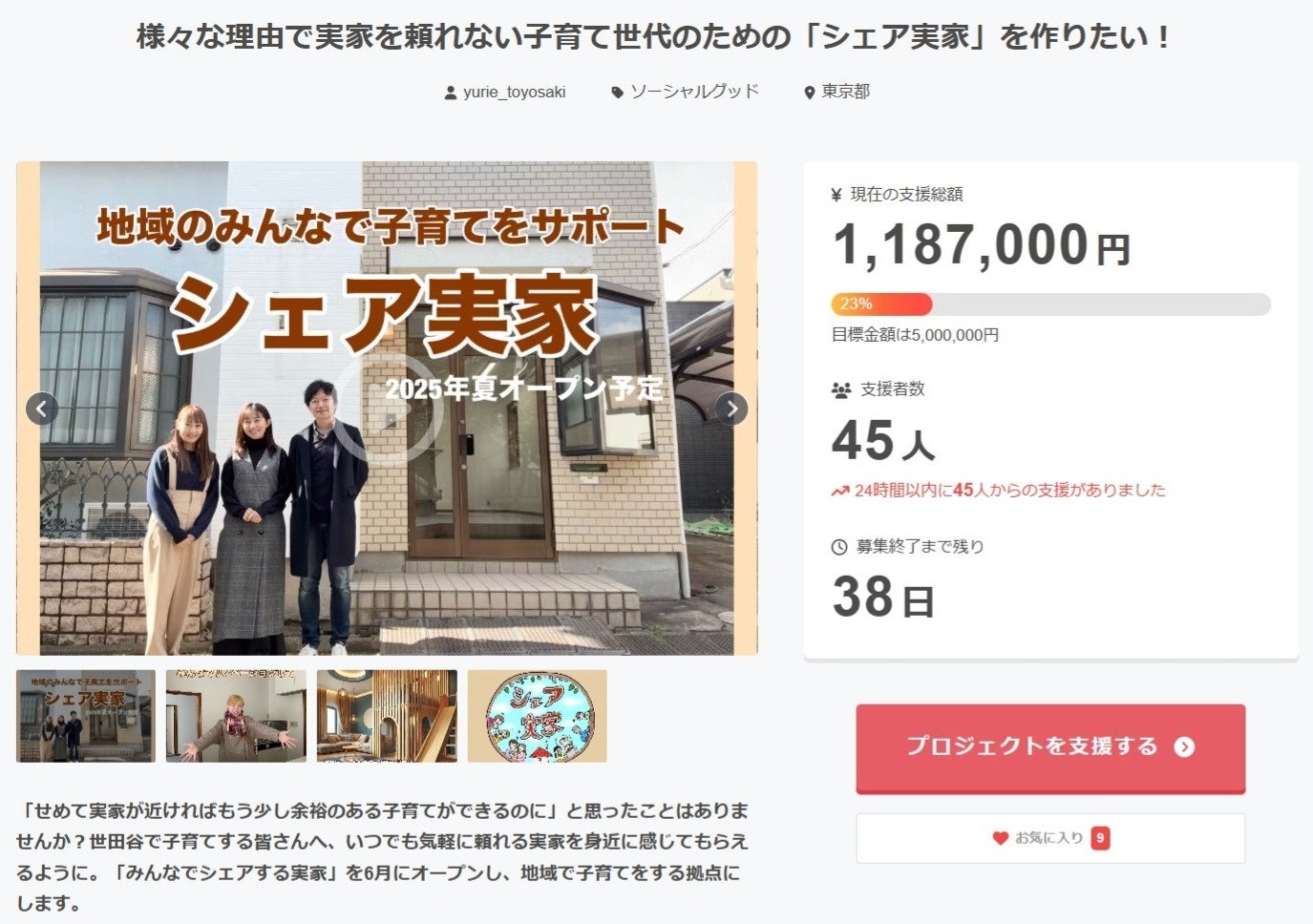 一般社団法人シェア実家のプレスリリース(2025年3月4日 11時30分)クラウドファンディング開始初日で100万円突破!世田谷に「シェア実家」をオープンし、地域で子育てを支える拠点づくりへ